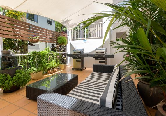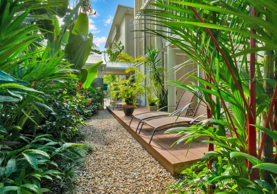 It is a modern, very well presented adults only property, in a top main street corner location, less than 100m from the beach.