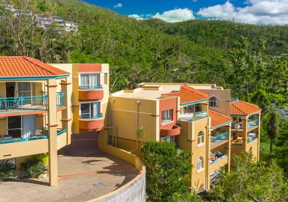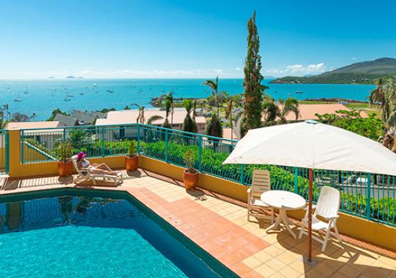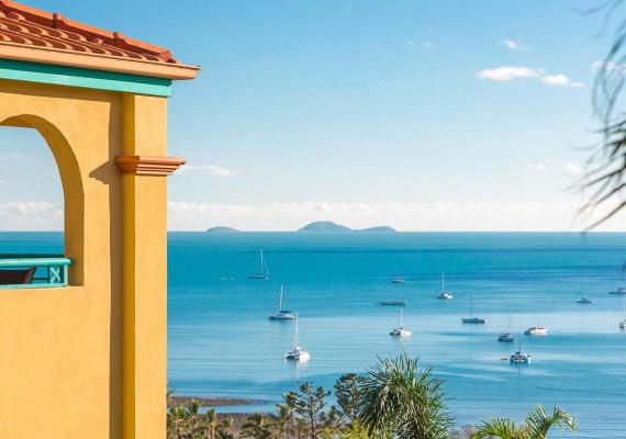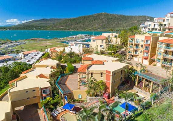 Delightful Tuscany style holiday resort with sweeping views of the Whitsunday Islands. A stroll down the hill to the Airlie village and restaurants. Fabulous 1,2 & 3 bedroom plus penthouse, elegantly appointed apartments and a penthouse, for the guests with unsurpassed water views of the Whitsundays.